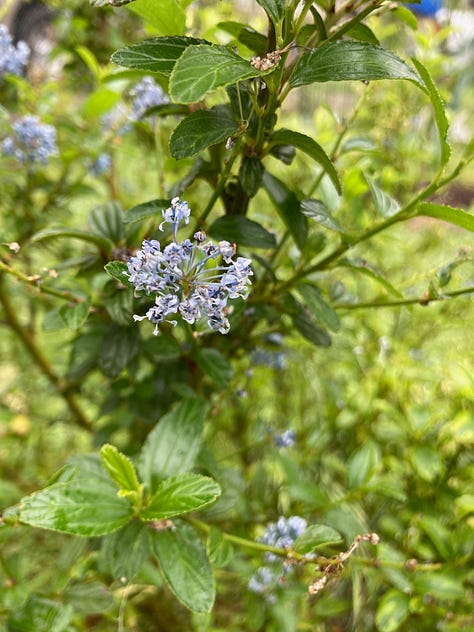 I read a bit of poetry. I read historical fiction unrelated to any of my goings on. I watch the hummingbirds and chickadees in our ceanothus bush -- regardless of weather.