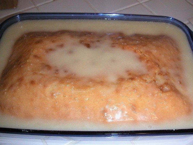Cool the cake on a rack for a few minutes while you prepare the Ole Southern Butter Sauce (recipe follows). Spread the butter sauce on the still warm cake.