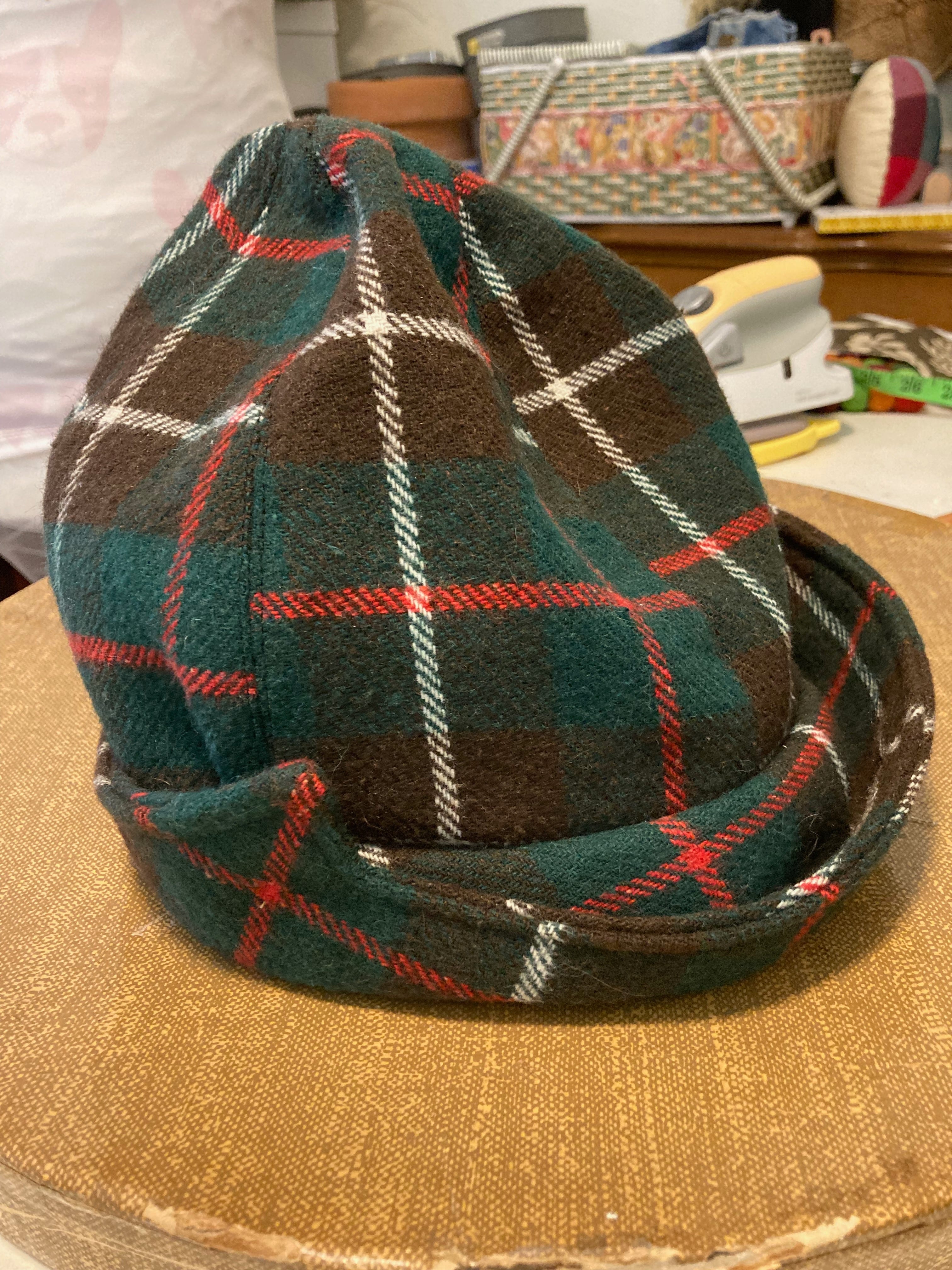 I had put the hat away in a hat box. When I went to put it away again last night, I discovered a plaid tweed cloche I had made as a mock-up for a brown velvet cloche I made for a friend. I'll be wearing that plaid cloche now! I do have to finish it around the inside of the brim, but that's easy enough. I'll just add a grosgrain ribbon trim