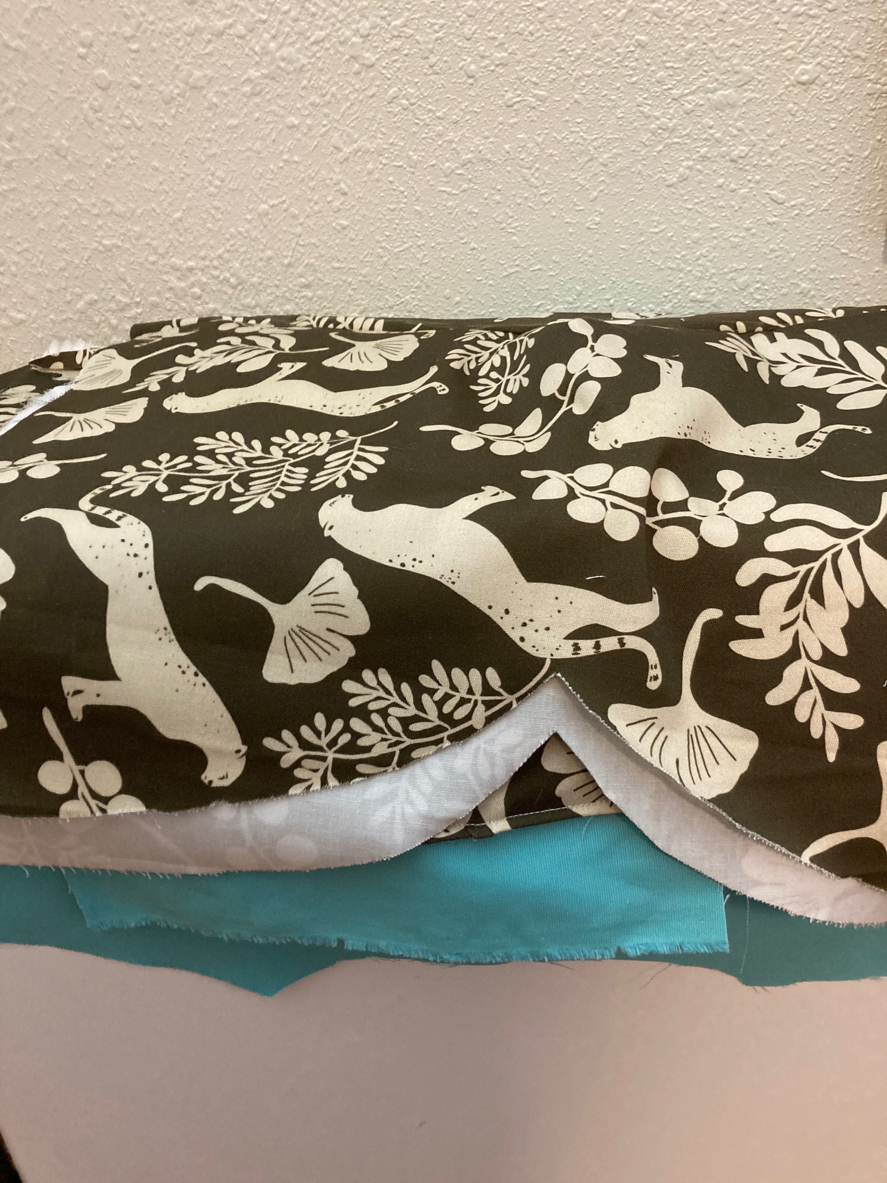 When I cut out the hood, I don't know what I was thinking! I just cut fabric and lining in a hood shape, giving no thought whatsoever as to whether it would fit the jacket for attaching. Ha! It didn't match up at all. I've had to cut out extra pieces and attach them to the original. That's finished now, so next will be finishing up the jacket, then adding the zipper, and the string for the hood. I didn't line this jacket, so that's a bit less work I had/have to do. I did cut out lining for the hood, but it's the same as the original fabric, and that's done